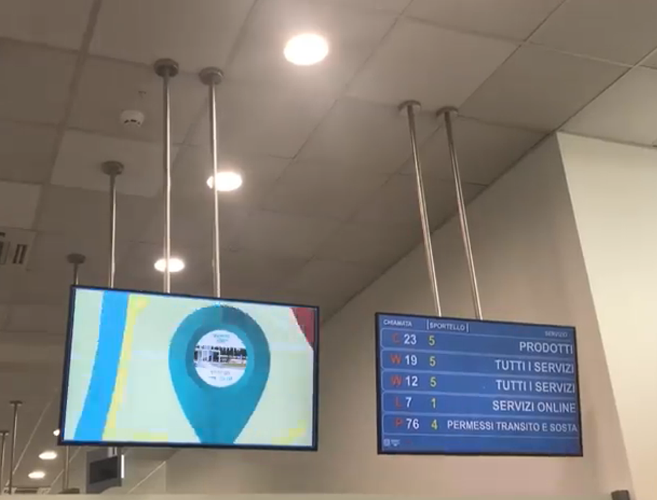 Abbiamo sviluppato una applicazione di comunicazione dedicata allo scambio dati tra il sistema elimina code e il sistema di digital signage in modo tale da poter visualizzare contemporaneamente sugli schermi le informazioni commerciali e le chiamate del sistema elimina code.